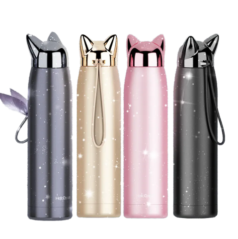 Tilki karikatür tasarım termos su şişesi özel çift duvar 12oz yalıtımlı paslanmaz çelik Metal termal termos R