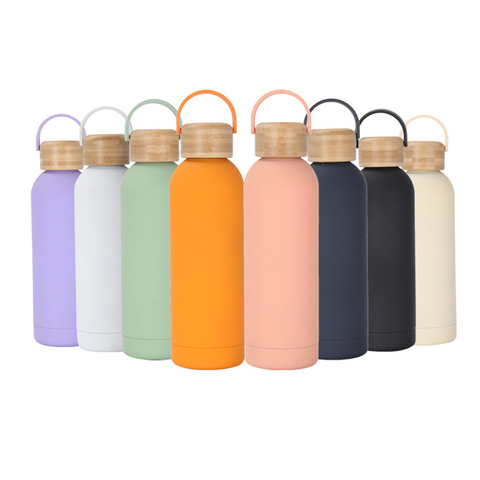17 oz çift duvar geniş ağız paslanmaz çelik su şişesi saman spor kantin ile bambu kapaklı yürüyüş ve bisiklet için harika