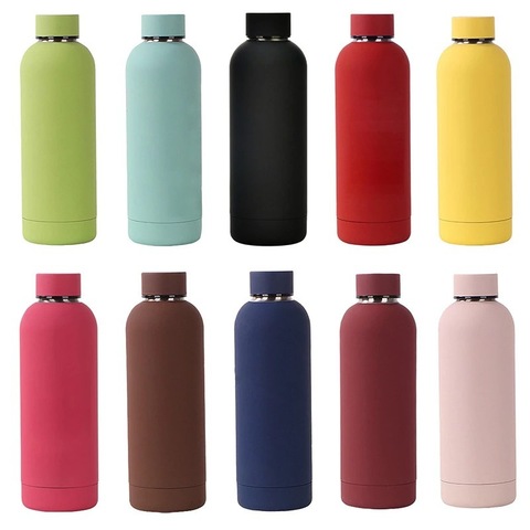 Özel Logo 500ml spor termos 18/8 çift duvar vakum yalıtım mat su şişesi hiçbir sızıntı kapağı ile 304 paslanmaz çelik